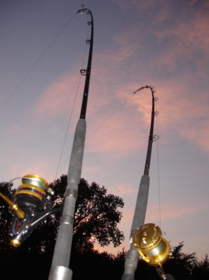 Es handelt sich um die einteilige Penn Guide Kingfish in 2,15m, 40lbs (Paßt übrigens gerade so in ein geräumiges 13" Futteral), kombiniert mit der Penn International Torque 300 Multirolle!
