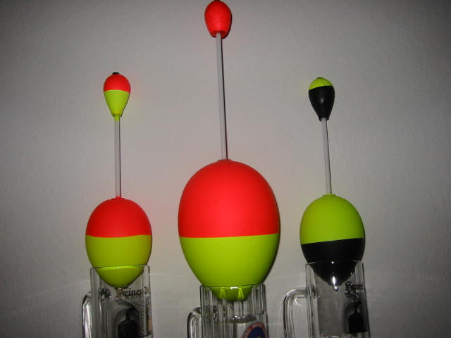 Die Freilaufposen bastel ich mir für 1€ selber: Im Obi ein Styroporkegel kaufen und auf die entsprechende Tragkraft abschneiden und mit fluofarbe einsprühen(siehe spanienbericht, tag 3, da ist so eine im bild zu sehen). Größter Votteil der selbstmachpose: Ich kann die Tragkraft genau auf meine Bleie abstimmen! (Bei mir 200 und 350g). So kann ich die gleichen Bleie wie bei der KJlopfmontage benutzen, möchte ich mal einfach nur Driften, hänge ich einfach die Laufpose ein.