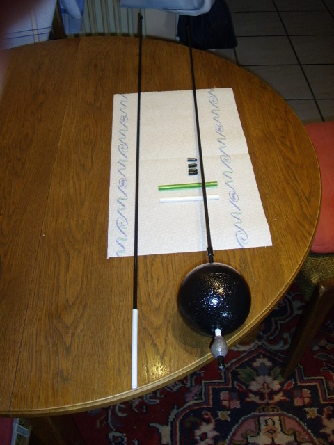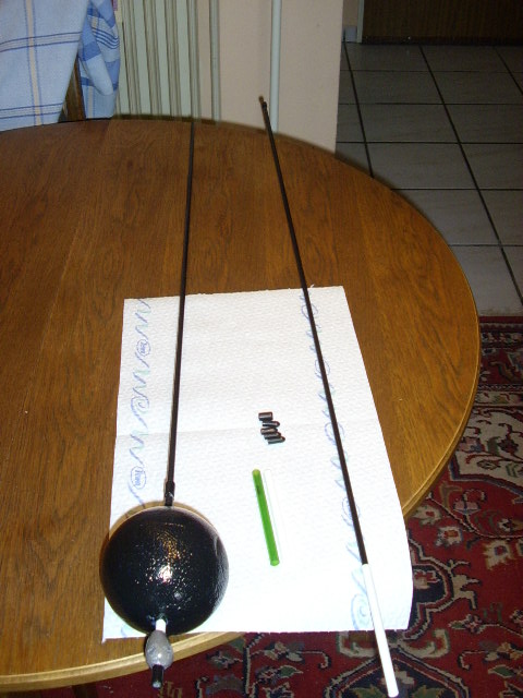 Was will man bei diesen Wetter anderes machen. nachdenklich Zum Bau des Kranes habe ich gebraucht zwei Kohlefaserstäbe von je 1m zwei Kohlefaserhülsen zum Verlängern des Kranes. Kunstoffkappen eine Styropor Kugel 10mm. Ein 10 Zentimeter Aquariumstab für die Achse der Kugel und natürlich ein 60gr Blei.Jetzt wollte ich natürlich auch gleich gucken ob das mit der Verlängerung klappt.Es klappt sehr gut. Daumen hoch Daumen hoch Lässt sich auch wieder gut auseinander nehmen.Werde aber Morgen den Kran auf 1.60m kürzen denn 2m ist zu lang.So und das alles auf Muttertag. Anne war leicht gesäuselt. drink Aber da muss sie durch.gehen wir heute Abend schön Essen.So leute viel Spaß beim nachbauen. großes Grinsen