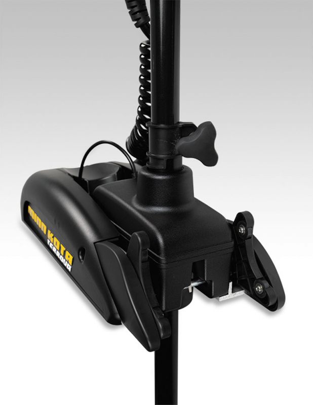 Neben allen Vorteilen der Powerdrive Bugmotore bietet die Terrova-Serie durch ein neu entwickeltes, wasserdichtes (IP6cool und mit zusätzlichen Funktionen ausgestattetes Fußpedal ein präziseres Steuerverhalten, selbst bei schwierigen Situationen, wie Gegenund Seitenwind, oder bei niedrigen Bootsgeschwindigkeiten. Die ausgewogene Gewichtsverteilung des Motors erleichtert das Einholen. Ist der Motor in der Motorhalterung verstaut, wird die Stromzufuhr automatisch abgeschaltet. Auf Knopfdruck wird die Motorhalterung wieder entriegelt und der Terrova lässt sich ebenso einfach wieder absenken.
