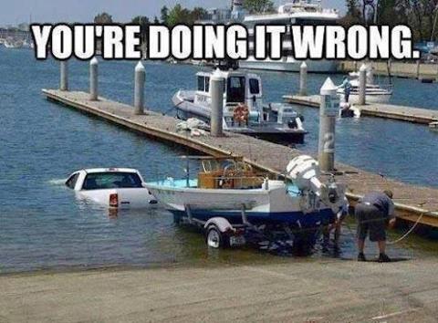 Auto sollte an Land bleiben, Boot muss ins Wasser, wenn man diesen Grundsatz befolgt macht Mans schon mal halbwegs richtig...