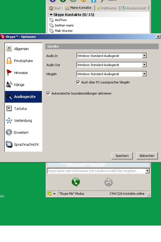 Vielen Dank noch mal...... ich hab das mit Skype nun im Griff.