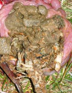 Beim Ausnehmen zuhause dann die Überraschung. Der ganze Magen war kurz vorm Platzen, so voll mit Pellets war der. Und daneben noch 4 Flußkrebse, die praktisch unverdaut waren...