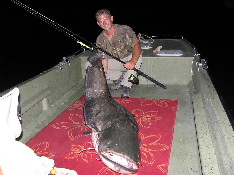 Und es hat doch noch geklappt, gestern Abend fingen wir zuerst einen 1,33m Walli auf Meeräsche, bevor uns ein richtig guter Fisch aus den Liegen riss, ein schöner Güster wurde ihm zum Verhängnis !!! Robert hatte einen verdammt harten Drill, welcher zum Schluss vom treibendem Boot aus endete. Zuviel Hindernisse und starke Strömung machten ein sicheres landen vom Ufer unmöglich...