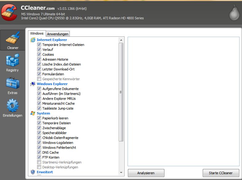 Mit CCleaner läuft Ihr Rechner noch schneller, denn die Software analysiert ausgewählte Bereiche Ihres PCs und entfernt unbrauchbare und nutzlose Dateien. Sie können Programme deinstallieren und die History und Cookies Ihrer Browser und vieler weiterer Anwendungen bequem löschen.