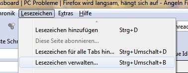 seit einigen Wochen wird mindestens einmal am Tag der Mozilla Firefox extrem langsam, so dass man einen Text schreiben kann und danach zusieht wie er erscheint! Dann läßt er sich meist auch nur noch über den Taskmanager beenden.