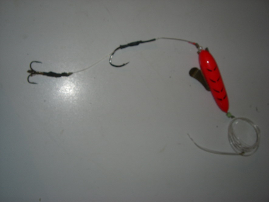 Pose 5-10cm vom Führungshaken,nicht grösser als 20g reicht auch für Döbel der fünf Pfund Marke. Vorfach min 3m bis 6m.