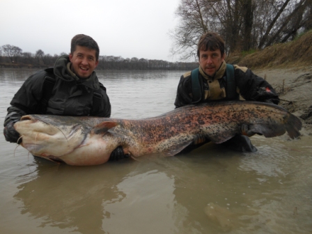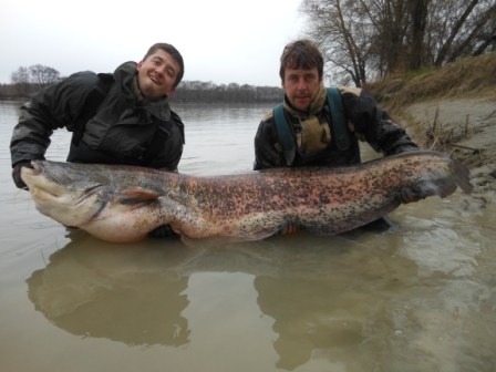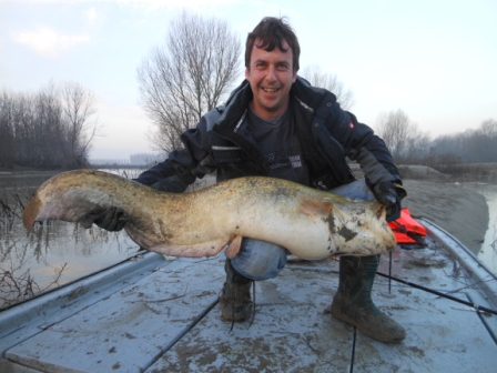 Wie es so schön ist bei Hochwasser kamen noch weiter kleinere Fische worüber sich meine Freunde sehr freuten da es ihr erster Po Besuch war und die Freude war groß, auch die Schlammschlacht machte ihnen nichts aus, was ja nicht jeden Manns Sache ist, die Fische muss man sich schon erkämpfen da unten und dies oft bei schwersten Bedienungen!!