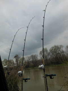 Für diese Nacht war es dann mal erledigt, das Wasser war stark am steigen und ich beschloss trotzdem noch eine Nacht am Hauptstrom zu bleiben, die Ruten wurden auf 5 erhöht und 3 davon ins Überschwemmungsgebiet, 2 aber trotzdem sehr Ufernah was sich als gut rausstellte denn auch hier verfing sich ein Walli mit 122cm.Ehrlich gesagt hätte ich mehr erwartet aber so ist es eben, und es blieb bei diesem einen Fisch der so gegen 22 Uhr biss.