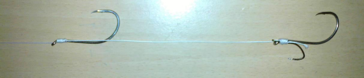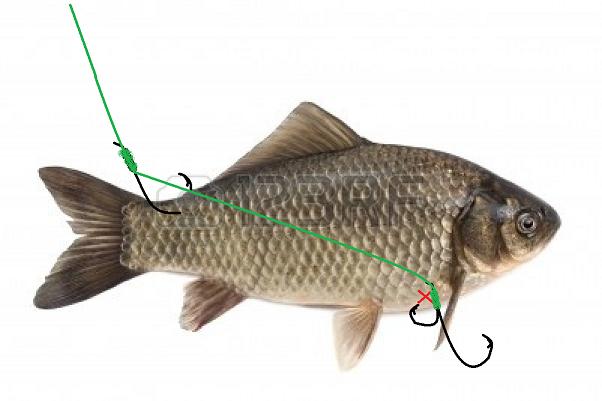 Der einfach haken durch die Schnauzte und der Drilling am ende in die untere Flanke.