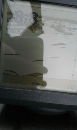Mein Echolot zeigt nicht wirklich gute Bilder. Ein Freund und ich haben mal unsere Echolote miteinander verglichen. Auf einem Boot. Er hatte ein billiges und ich meins. Er hatte Sicheln und ich nicht. Ich seh den Boden und die Wassertemperatur und jede Menge Schwebeteilchen. Mehr nicht.