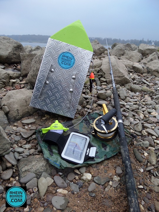 Ohne Boot und vom Ufer aus lassen sich mit unseren RHEINBOARDS Steinmontagen bis ca 6. kg Gewicht an fängige Stellen im Fluss bringen und ablegen.Damit vergrößert sich der Aktionsradius für den Uferangler um ein Vielfaches.