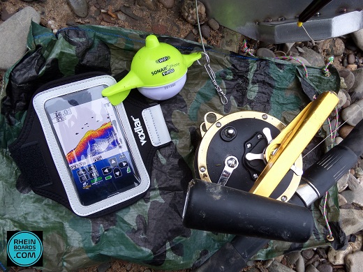 Beim Einsatz mit dem RHEINBOARD liefert ein kleiner "Fisch-Finder" jetzt ungeahnte Perspektiven unter Wasser.