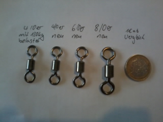 Ich denke mal, dass man als Angler mit Rute und Co. eh nicht mehr als 10/15 kg Druck aufbauen kann, der dann noch schön in der Schnur stecken bleibt, so dass beim Fisch (und somit auch beim Wirbel) vielleicht noch so 5-10kg ankommen. Bei diesen Lasten dreht sich der Wirbel ja noch. Daher auch meine Meinung, dass der Wirbel durchaus geeignet ist. Wie gesagt, wer näheres Interesse hat: Einfach mal mit dem Verkäufer (blackblei) über e..y sprechen, der schickt euch denke ich mal gerne nen paar muster gegen nen unkostenbeitrag und porto zu.