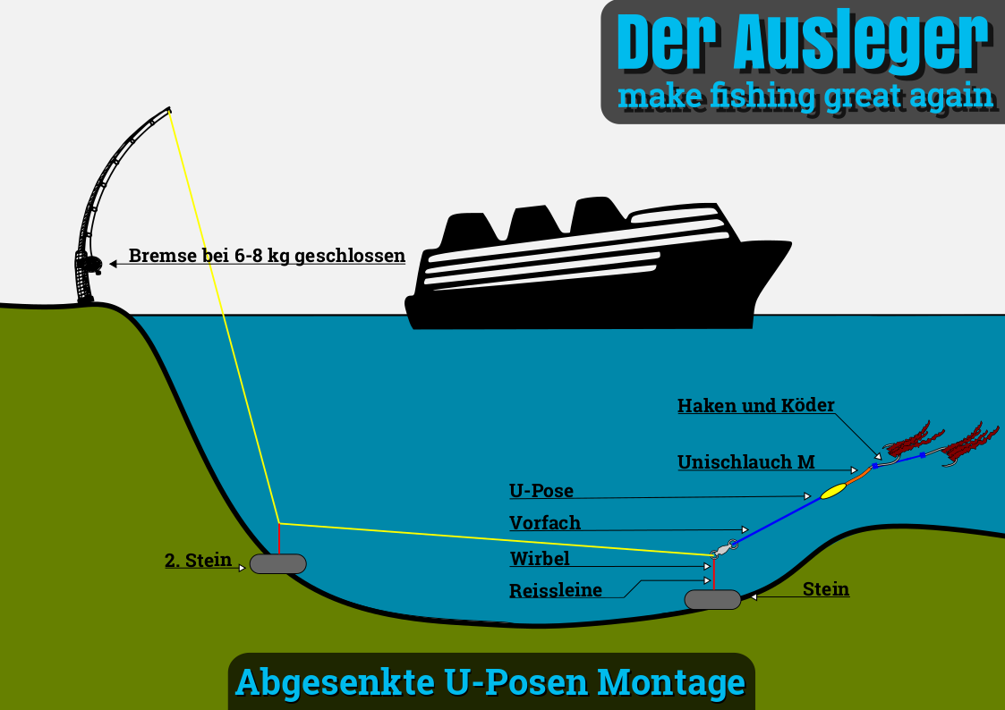 Fische seit letztem Jahr nur noch eine abgesenkte Steinmontage im See da bei uns Baggerschiffe bzw Lastkähne zu jeder Tages und Nachtzeit durchfahren. Als Hauptstein dient ein H Pflasterstein und als absenker ein normaler Pflasterstein. Reißleine beim Absenkstein leichter wählen und bei großen weiten lieber 2 absenksteine verwenden. Eine Beeinträchtigung der Bissanzeige könnte ich durchs absenken nicht feststellen. Bei mir hat sich die Rute bei jedem Biss einfach nur gerade gestellt und das zeigen mir die Catsounder Perfekt an Daumen hoch