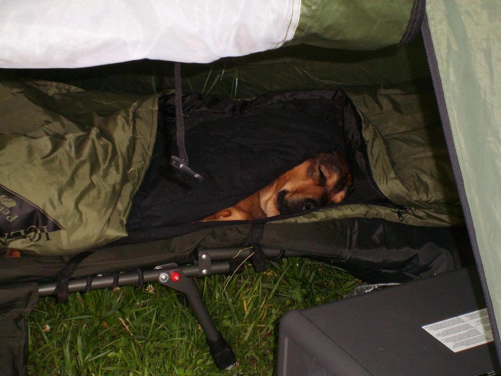 Stimmt nass gehts nicht, dann pennt er auf ner Decke im Zelt. Aber ansonsten ist so ein Hund ein super Angelkamerad und besser als jedes "Campsecure". Und im Sommer nehm ich ihn als Kopfkissen unter freiem Himmel. Daumen hoch