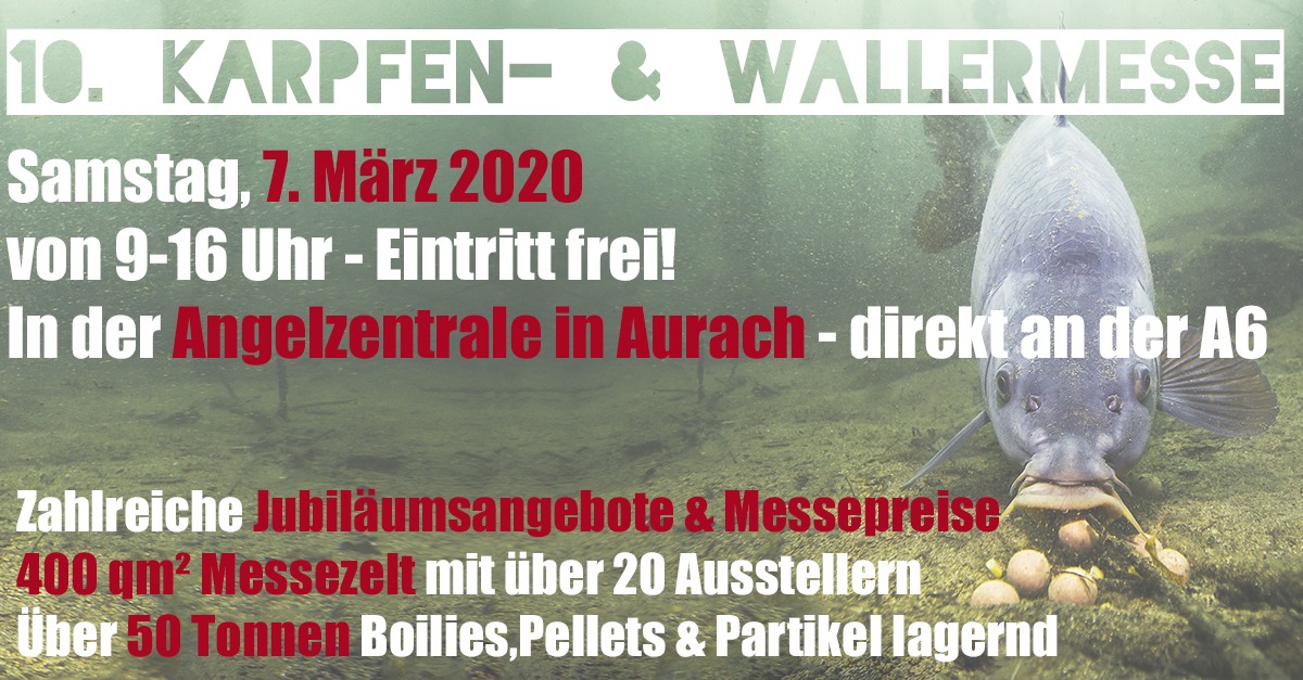 Schon jetzt solltet Ihr euch auch den Termin für die 10. Internationale Karpfen- und Wallermesse am 7. März von 9-16 Uhr bei uns in der Angelzentrale vormerken.