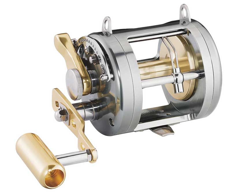 Die neue Multirollenserie der Superlative.Konstruiert für die schwere Fischerei z.b.auf Dorsch, Leng, oder Heilbutt in Norwegen.Perfekt natürlich auch für das schwere Wallerangeln sowie für die Big Game Fischerei. Rahmen und Schnurspule aus einem Aluminiumblock gefräst. Kalt gepresste Seitenplatten. Hauptgetrieberad aus Messing. Extra starke Edelstahlachse. Kraftvolle, progressive Lever Drag Schiebebremse.Technische Ausstattung: