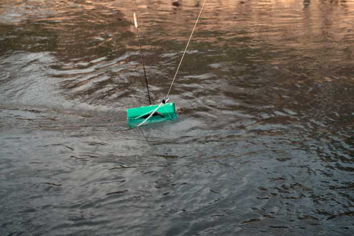 Die Bebeiung der Wimmers ist jeder starken Stroemung gewachsen, er kippt nicht, die antenne laest den schwimmer mit dem Kniklicht gut erkennen.