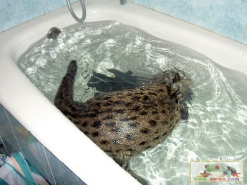 richtig erkannt, aber was macht der in der CITES-Liste aufgenomme Ozolot bei einem Privatmann in der Badewanne