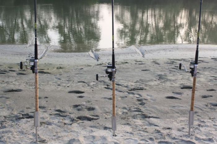 zuerst war der wunsch vater des gedanken, kollege rief an... ' ich brauch simple rutenhalter fuer die sandbank und die duerfen nicht so aufwendig, schwer und kostspielig sein..., .. schnellen einsatz fuer die sandbank, nix kompliziertes, nix schweres, nichts sperriges, einfach funktionell, rostfrei und stabil...' ... in's boot schmeissen, auf die sandbank, fischen, wieder ins boot schmeissen,...'