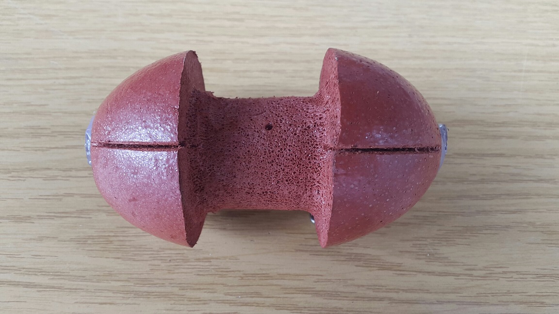 2. relativ Mittig :-) Material vom Netzschwimmer nehmen. Aufpassen, dass man nicht zu viel wegnimmt aber auch nicht zu wenig, dass ausreichen Schnur drauf passt.