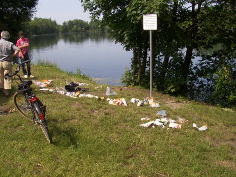 Vier junge Leute zwischen 19 und 20 Jahren hinterließen ihren Müll am Wasser nach einem langen Wochenende im Juni.