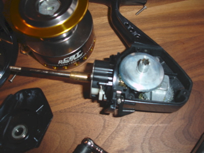 und sogar etwas Fett ist im Gehäuse! ((was man bei Rollen die zum Teil mehr als das Dreifache kosten nicht hat (z. B. Plastikgetriebe ...))