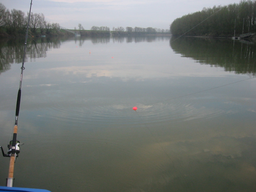 Montage: Auf der Hauptschnur Bleiolive 80 g (je nach Strömung) Gummiperle Wirbel und Vorfach. Vorfach fische ich nie unter 1,50m im frühjahr so gar länger bis zu 2,5m. Einzelhaken und eine kleine Karausche oder Brachse.