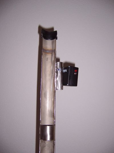 stell dir in etwa einen Kaffeteller oder auch etwas größer in VA vor , der einen Einschnitt hat in Form deines Rutenhalters , d.h. du steckst den Teller einfach von unten auf den Rutenhalter (gebremst vom Becher) , bevor du ihn in den Sand drückst .