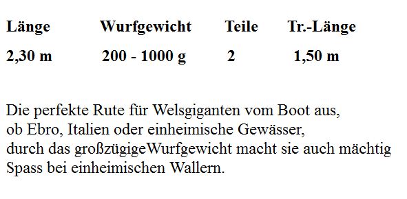 Es ist diese Rute: "HART X Cat ADVANZ Bootsrute 2,3 m Mega Siluros Range"