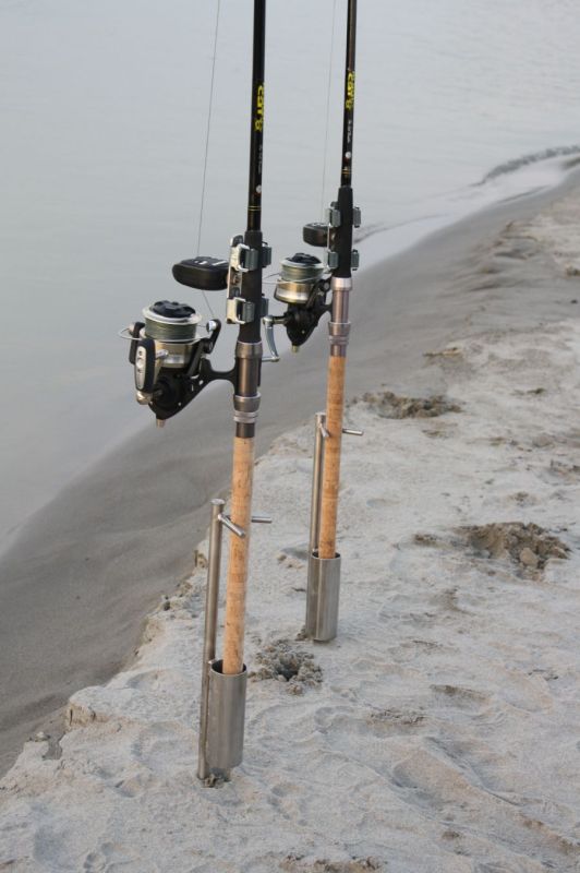 wenn ich heute rutenhalter fuer sand, festen boden, beton, oder auf dem steg zu verschrauben brauche, nutze ich solche Edelstahl rutenhalter mit rutensicherung, klappbaren cuprests, bissanzeigeraufnahmen, variablen aufstellwinkel, etc. pp. ...