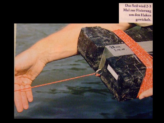 Wie befestigt ihr den Bojenstein und die Abrissleine an dem „Federvieh“?