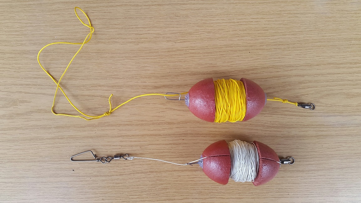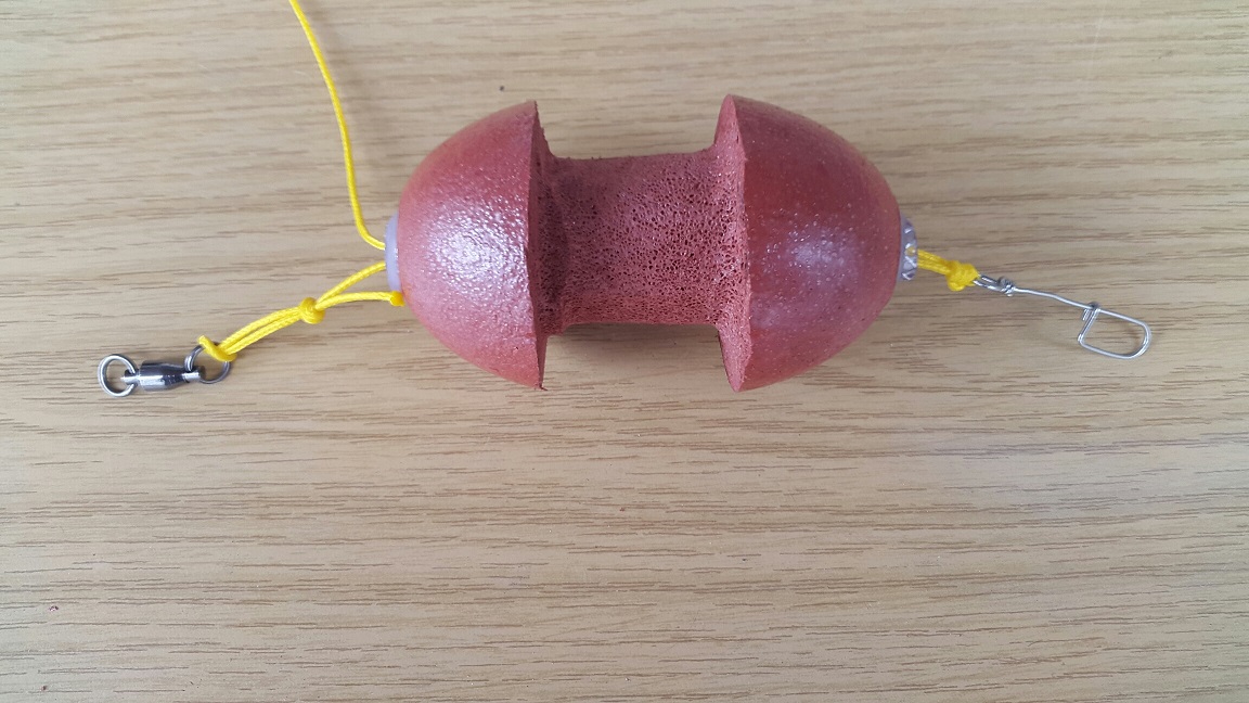 2. relativ Mittig :-) Material vom Netzschwimmer nehmen. Aufpassen, dass man nicht zu viel wegnimmt aber auch nicht zu wenig, dass ausreichen Schnur drauf passt.