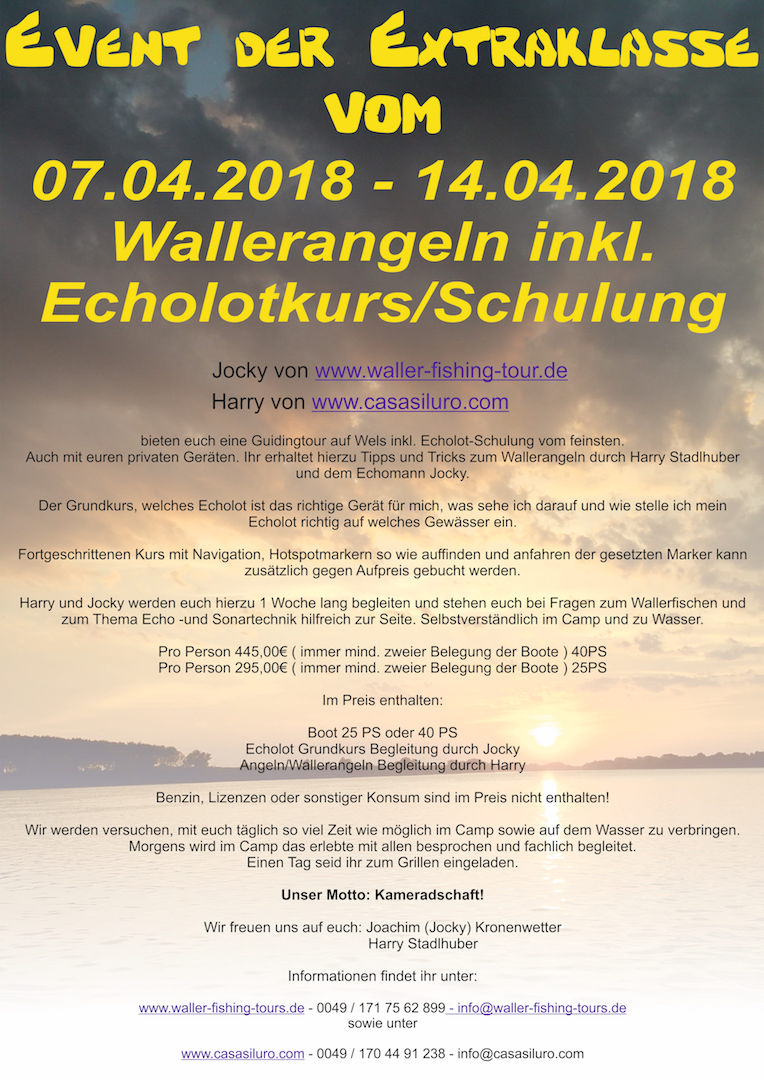 Die Betreiber und Administratoren, Supermoderatoren und Moderatoren von Wallerforum.com distanzieren sich hiermit ausdrücklich durch den von Jocky am 07.01.2018 um 22:44 verfassten Beitrag. Sollte dieser Beitrag Ihre Rechte verletzen bitten wir um Benachrichtigung