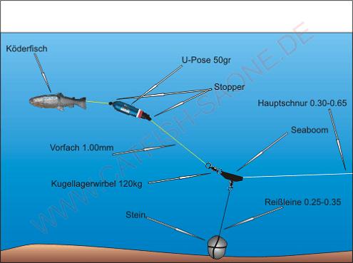 Ich verwende als U-Posen Montage,die auf dem ersten Bild.Anstatt des Steins nehme ich ein 200-250 g Strömungsblei.Die Montage lässt sich zwar noch werfen.Aber nicht weit und "Huddler" sind nicht ausgeschlossen