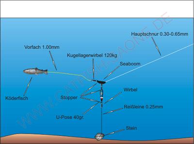 @Dirk S.: Das Bnutzen eines Bootes bezog sich nicht auf das Fischen vom Boot,sonder´n auf das Auslegen der Montage!