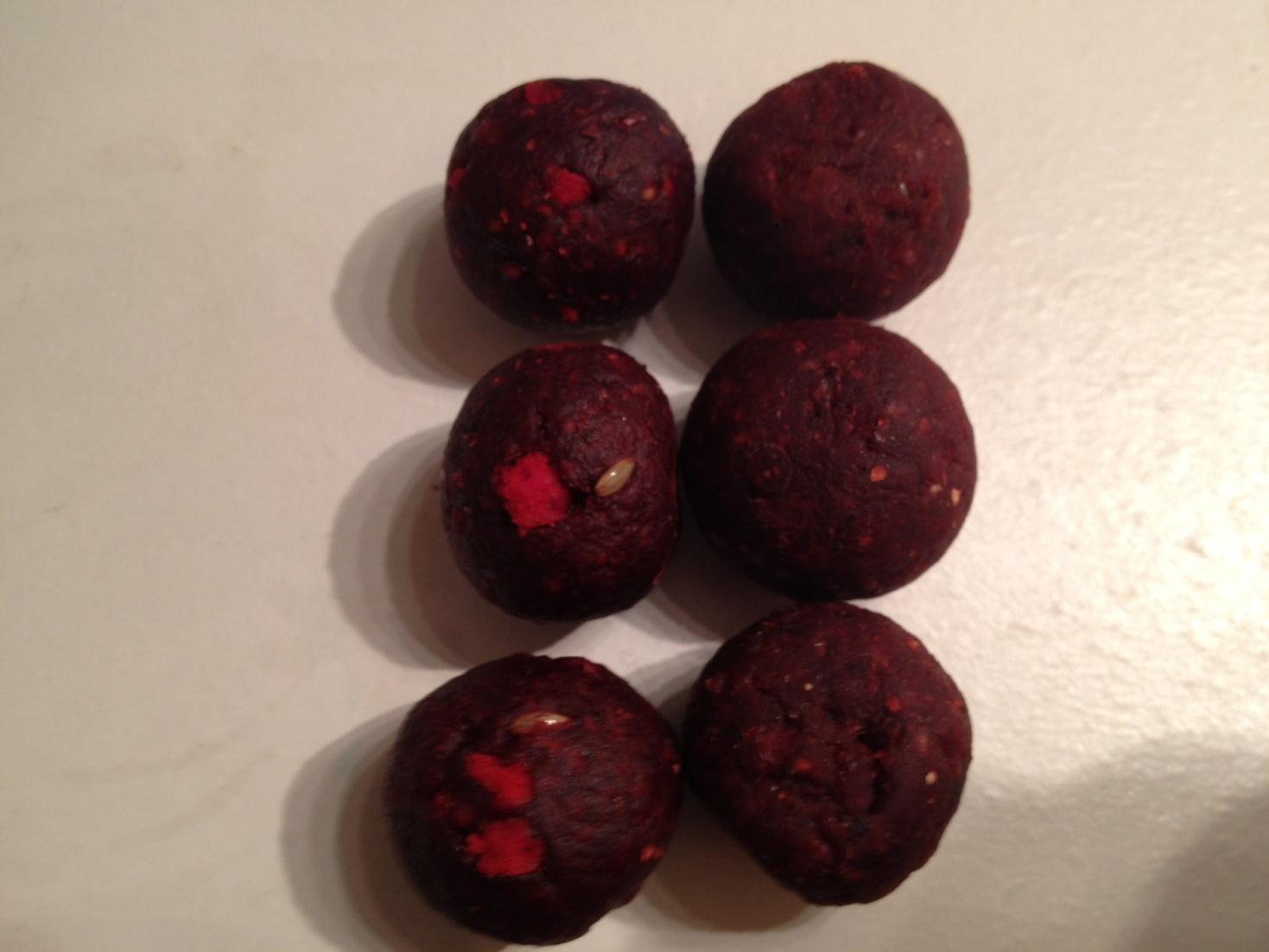 Der Teig war im übrigen von www.successful-baits.de in neutraler Ausführung den ich dann mit Blutmehl, Lebermehl, Red Robin, roter Boiliefarbe, red Birdfood, und Tigernussflavouroil aufgepeppt habe. Bis auf Tigernussoil alles Zutaten von Successful-baits.