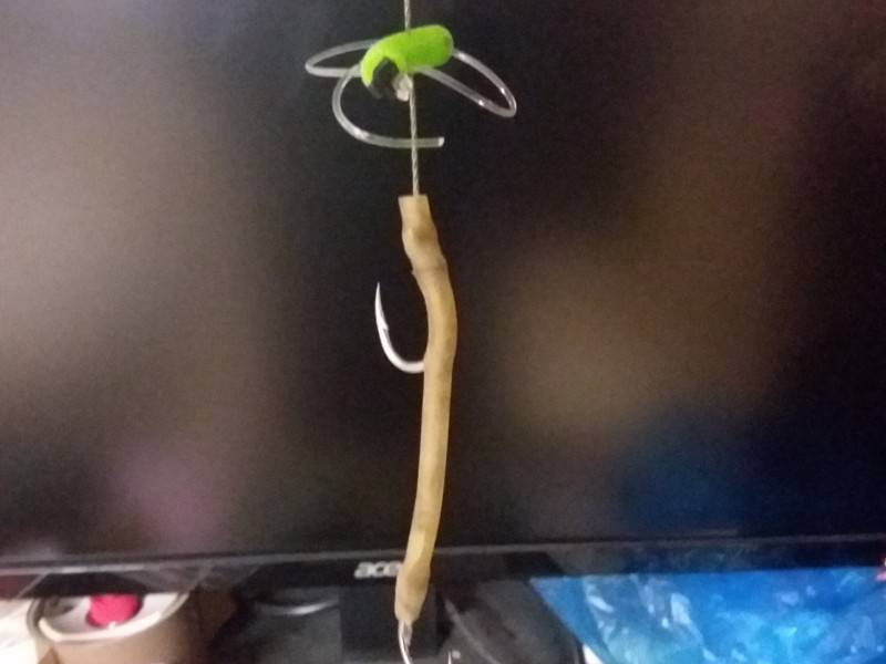 Die Montage wird sehr einfach ausschauen, zuerst eine 15g Meduzza U-Pose mit 9 Tauwürmern an Madenclips befestigt und dann ein großer Circle wo noch 3 Würmer draufkommen. Das ganze an einem 2 Meter geflochtenen Vorfach an einer Durchlaufmontage mit 30er Reißleine. Da wir bei uns kein Boot verwenden dürfen wird der Stein von Hand geworfen. Also alles ziemlich simpel.