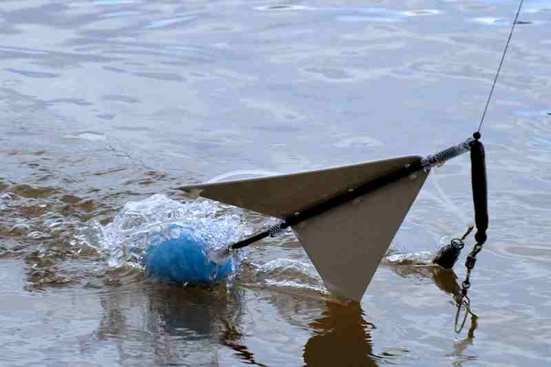Kein Planer ist so stabil wie der Drachen. Normale Planer haben immer noch die Pose und den Köder im Schlepptau und verlieren somit an Radius und Druck. Entscheidend ist der Strömungsdruck, den ich auf dem Drachen einstellen kann. Durch die richtige Winkeleinstellung kann ich sehr schwere Gewichte einsetzen und den Köder auch in der entsprechenden Tiefe präsentieren. Am Po ist es natürlich sinnvoll und von Vorteil wegen der starken Strömung.