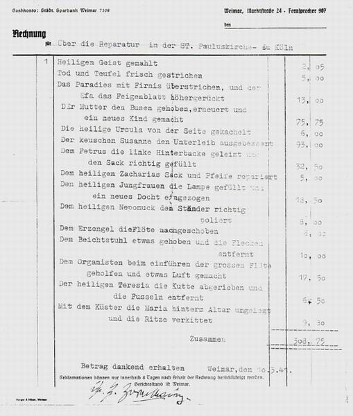 das ist eine Uralte Rechnung der St. Paulus Kirche in Köln.