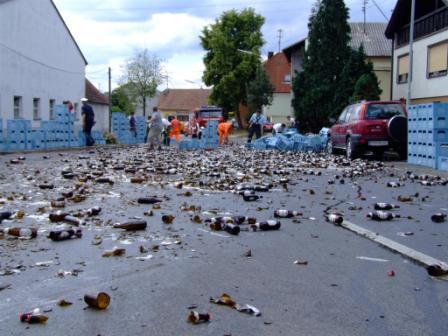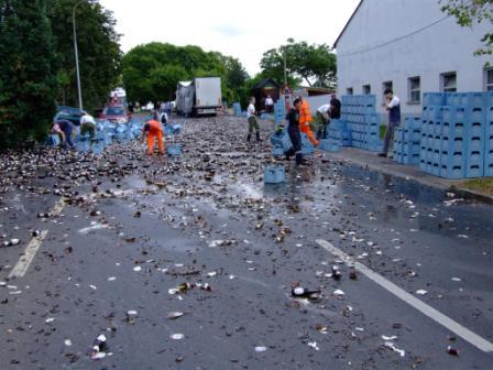 Der Fahrer hat das Ösi-Bier wahrscheinlich auf die Strasse gekippt, damit er feinsten deutschen Gerstensaft verladen kann!