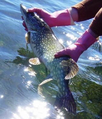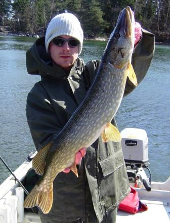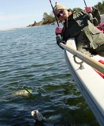 Aber wir suchten natürlich fleißig, bis zu 70km pro Tag, und konnten so im glasklaren Wasser so einige Hechte an unsere Kunstköder locken- zwischen 0,5 (!) und 2m Tiefe, die meisten Attacken konnte man live miterleben! Absolutes Fun-Angeln also! Doppeldrills waren die Regel. Am letzten Tag landeten wir dann direkt ion der Laichzeit und konnten ca. 50 Hechte im flachen Wasser beobachten, die sich nicht mehr für unsere Köder interessierten.
