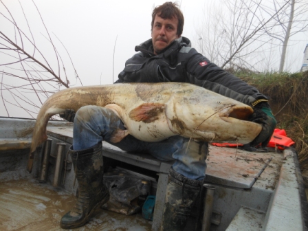Wie es so schön ist bei Hochwasser kamen noch weiter kleinere Fische worüber sich meine Freunde sehr freuten da es ihr erster Po Besuch war und die Freude war groß, auch die Schlammschlacht machte ihnen nichts aus, was ja nicht jeden Manns Sache ist, die Fische muss man sich schon erkämpfen da unten und dies oft bei schwersten Bedienungen!!