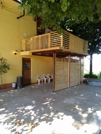 • im Außenbereich mit eigner Pergola, Sitzgelegenheiten und Grill.
